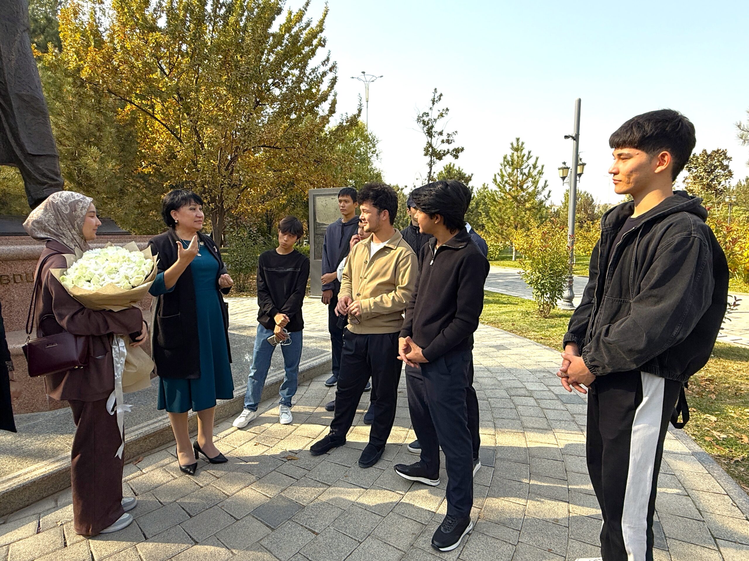 In addition, on the occasion of the Day of the Uzbek Language, a cultural and educational event was held with students at the Writers’ Alley, near the monument of Abdulla Oripov — the People’s Poet of Uzbekistan, recipient of the title “Hero of Uzbekistan,” and a renowned poet, translator, and public figure.