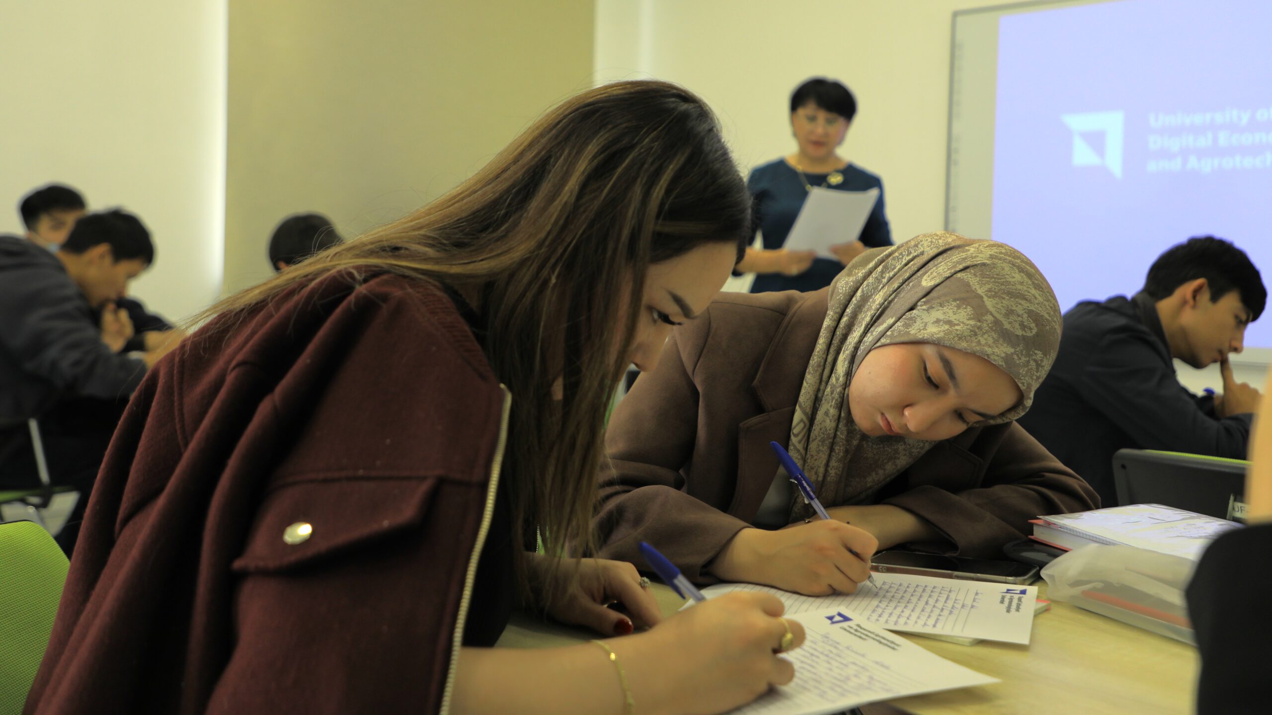 On this occasion, the University of Digital Economy and Agrotechnologies organized a large-scale dictation event under the slogan “Language — the Mirror of the Nation” on October 21, 2025. The main purpose of this event was to strengthen the feelings of love and loyalty to the native language among young people, improve their spelling literacy, and further enhance the prestige of the Uzbek language as the state language.